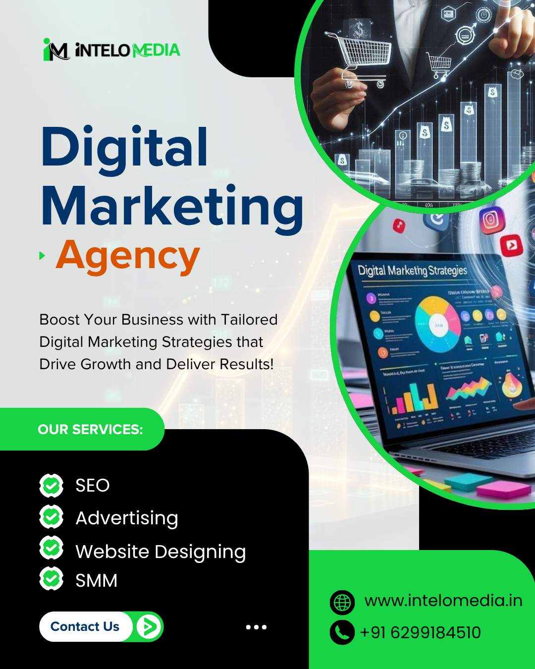 Intelo Media is a full-service digital agency that helps businesses grow, build their brand, and succeed online. We are known as the best digital marketing company and a trusted digital marketing agency, offering the best digital marketing service to help you reach the right audience, generate leads, and increase sales.